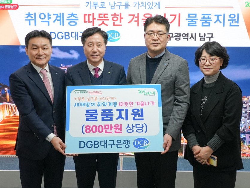 조재구 남구청장은 따뜻한 마음으로 나누어주신 성금은 취약계층에게 큰 힘이 될 것이라며, 여러 사회공헌활동을 이어가고 있는 DGB대구은행에 깊은 감사의 말씀을 드린다고 전했다.