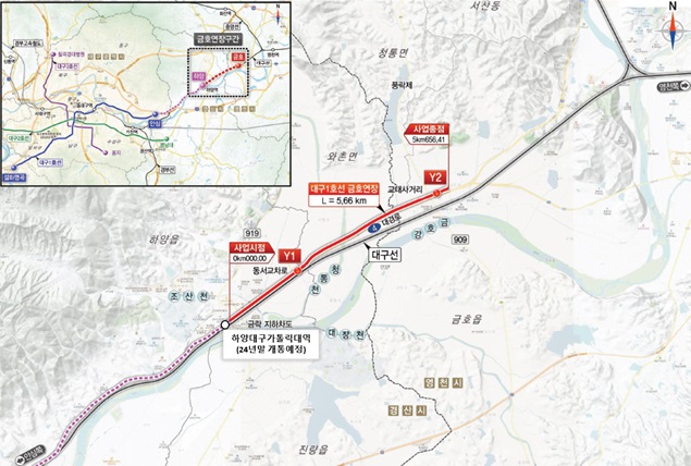 한편, 대구도시철도1호선 영천(금호)연장 사업은 총연장 5.66km, 신설역사 2개소 건설로 총사업비 2,341억원을 투입해 2029년 사업 완료 및 2030년 개통을 목표로 추진할 계획이다.