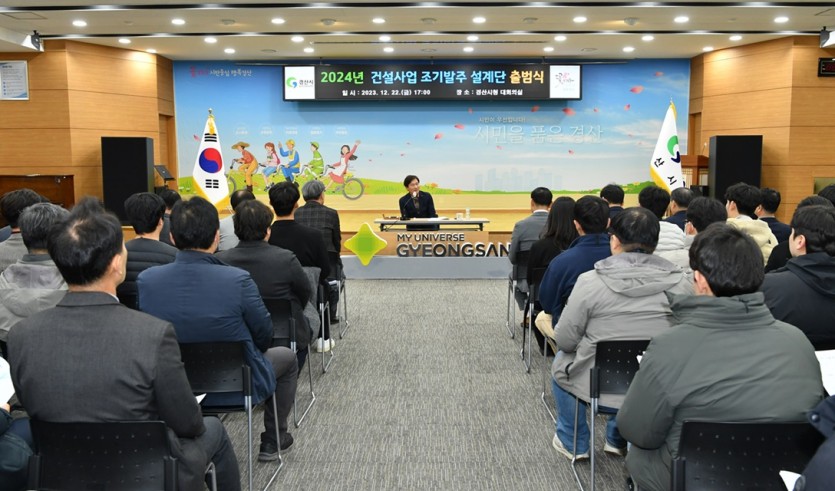 경산시는 22일 시청 대회의실에서 시 본청, 맑은물사업단, 읍면동 건설사업 관련 공무원 140여 명이 참석한 가운데 "2024년 건설사업 조기발주 설계단 출범식"을 개최했다고 밝혔다.