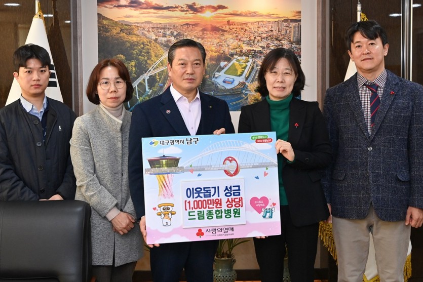 대구시 남구청은 지난 6일 드림종합병원(대표원장,이순정)에서 겨울철을 맞이해 어려움을 겪고 있는 취약계층을 위해 성금 1000만 기탁했다고 밝혔다.