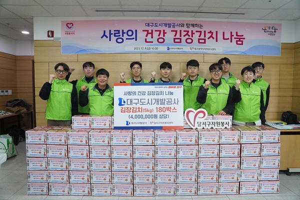 대구도시개발공사의 임직원으로 구성된 청아람봉사단은 지난 8일 달서구 자원봉사센터에서 겨울맞이 사랑의 김장 봉사활동을 실시했다고 밝혔다.