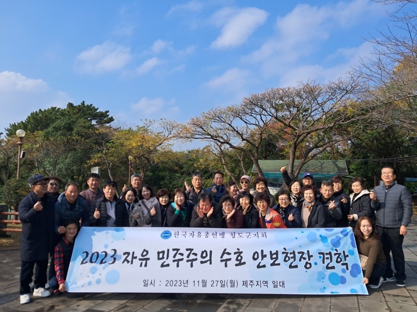 한국자유총연맹 청도군지회는 지난달 27일부터 1박 2일의 일정으로 회원 30여 명과 함께 나라사랑 정신을 발휘하기 위한 제주 국제 평화센터 등 안보 전적지 일대 현장을 견학했다고 밝혔다.