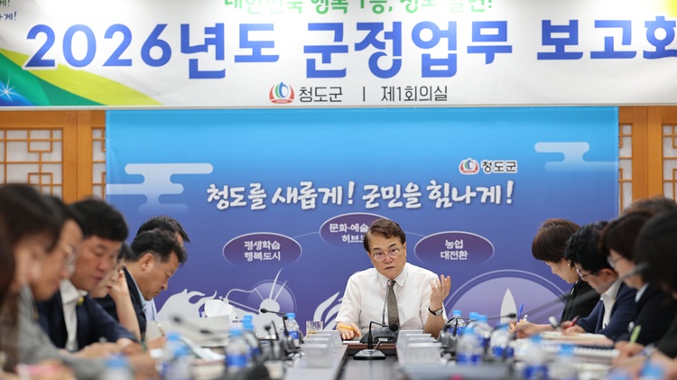 청도군은 지난 2일부터 9일간 군청 제1회의실에서 본청·직속기관·사업소 등 20개 부서와 청도공영사업공사를 대상으로 ‘2026년도 군정업무보고회’를 열고 내년도 군정 준비에 착수했다.