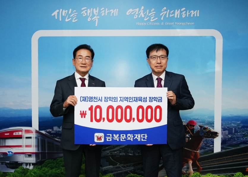 영천시장학회는 10일 금호제일교회와 금복문화재단으로부터 장학금을 기탁받았다고 밝혔다.