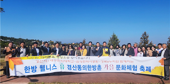 대구한의대학교는 10일 경산시의 관리위탁 운영시설로서 경북도 웰니스관광지로 지정된 경산동의한방촌에서 ‘경북e누리와 함께하는 한방 웰니스 休휴 오손도손 가을 문화체험 축제’를 개최했다고 밝혔다.