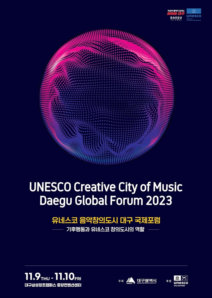 대구시는 9일부터 2일간 유네스코 창의도시 간 파트너십 구축을 위한 '2023 유네스코 음악창의도시 대구 국제포럼'을 개최한다고 밝혔다.