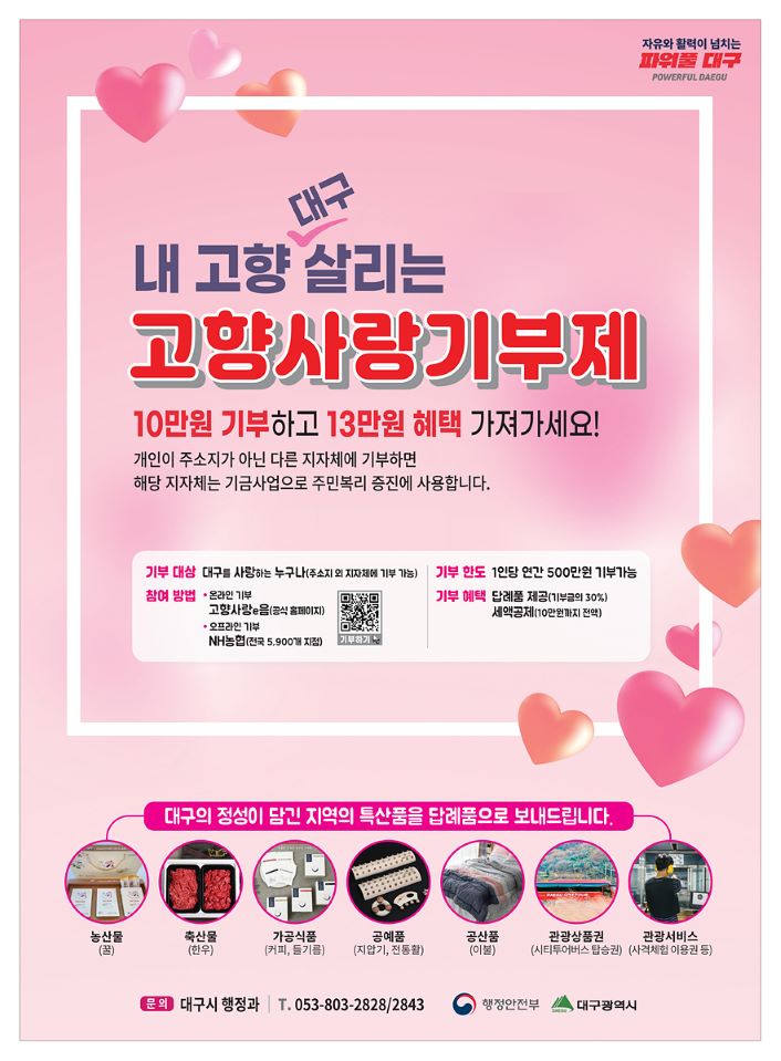 대구시, "고향사랑기부제 답례품" 공급업체 모집