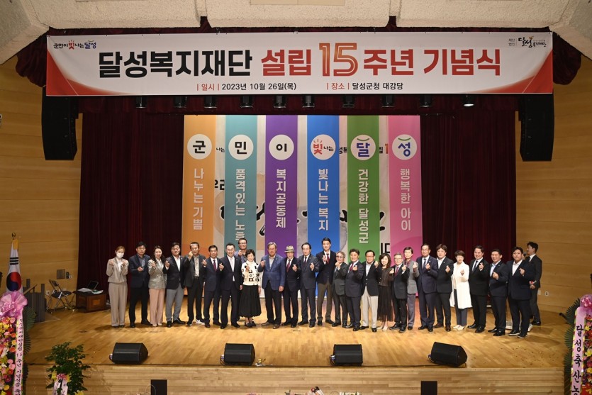 달성복지재단은 지난 26일 달성군청 대강당에서 ‘나눔, 섬김, 사랑’의 의미를 다시 한번 새기며 설립 15주년을 맞이해 ‘조화’의 의미를 더해 나눔, 사랑, 섬김으로 조화롭고 복지로 건강한 달성군을 만들어 가겠다고 1일 밝혔다.