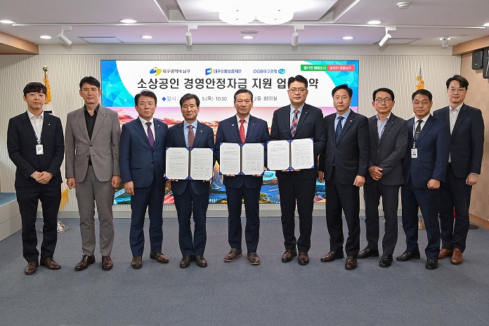 대구시 남구청은 지난 5일 시중은행의 고금리 대출기조로 경영자금 확보에 어려움을 겪고 있는 지역 소상공인을 위해 대구신용보증재단, 대구은행 봉덕동지점과 협약을 체결했다고 밝혔다.