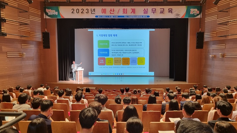 이번 교육에는 예산회계실무 네이버카페 홈지기로 유명한 최기웅 강사를 초빙하여 200여 명의 회계담당 공무원들이 참석했다.