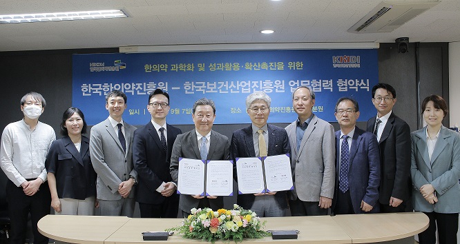한국한의약진흥원과 한국보건산업진흥원이 한의약의 과학화와 성과활용·확산을 위해 업무협약을 맺었다.