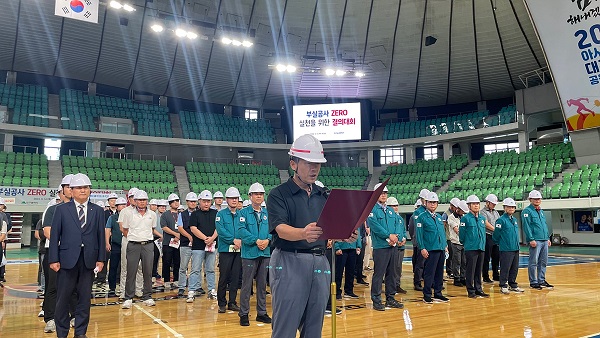 결의대회 참석자들은 부실공사 방지를 위해 법령과 기준을 준수하고, 기술력 향상과 성실·책임시공으로 부실공사 원천 차단, 부실시공에 대해 무관용 원칙으로 엄정 대처, 지역 건설현장 무재해 기원 등의 결의를 다졌다.