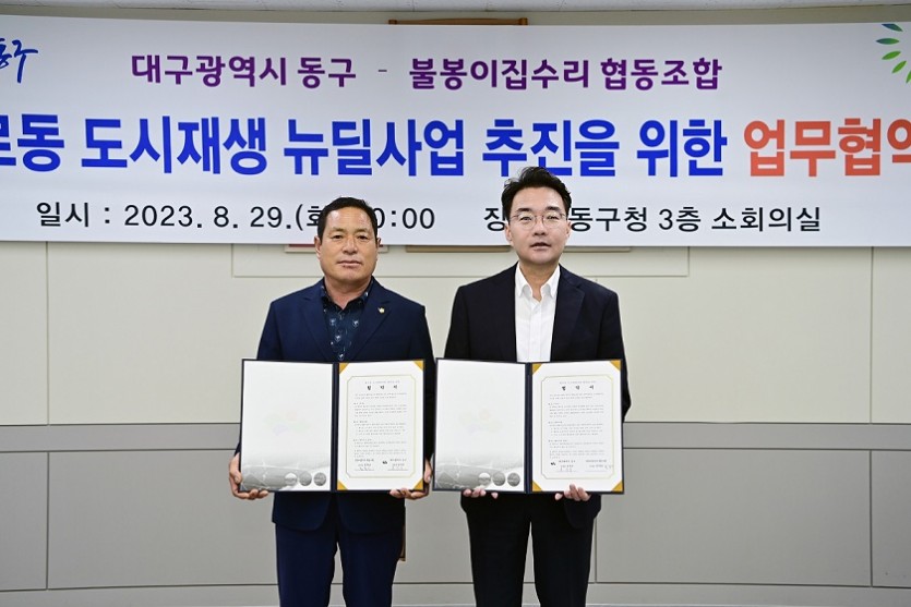 대구 동구청은 지난 29일, 불로동 도시재생 뉴딜사업의 성공적인 추진을 위해 불봉이수리소 협동조합과 업무협약을 체결했다고 밝혔다.