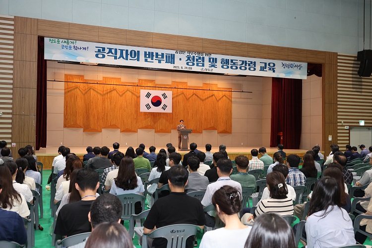 청도군은 29일 국민체육센터에서 전 공직자를 대상으로 ‘2023년 반부패·청렴 및 행동강령 교육’을 실시했다고 밝혔다.