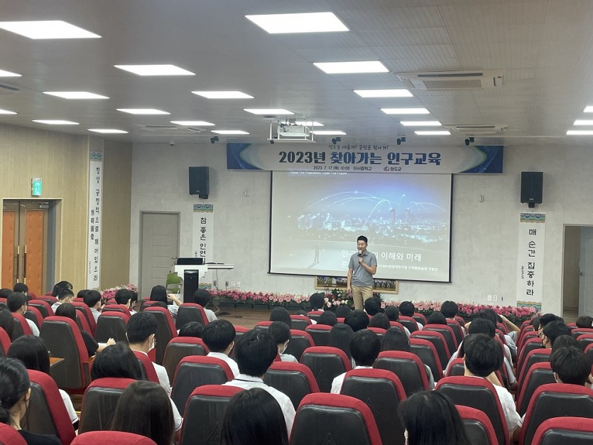 지난 14일에는 풍각면사무소, 17일에는 이서중학교와 모계고등학교를 방문해 지역주민과 학생 300여 명을 대상으로 인구교육을 실시했다.