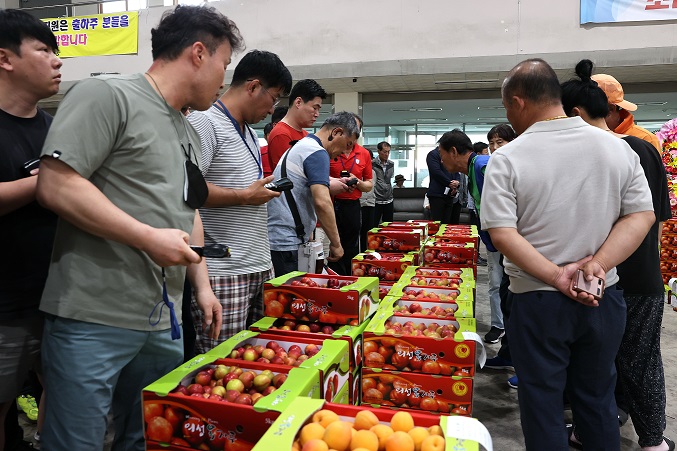 의성군 농산물공판장 개장 "자두, 복숭아 경매" 시작