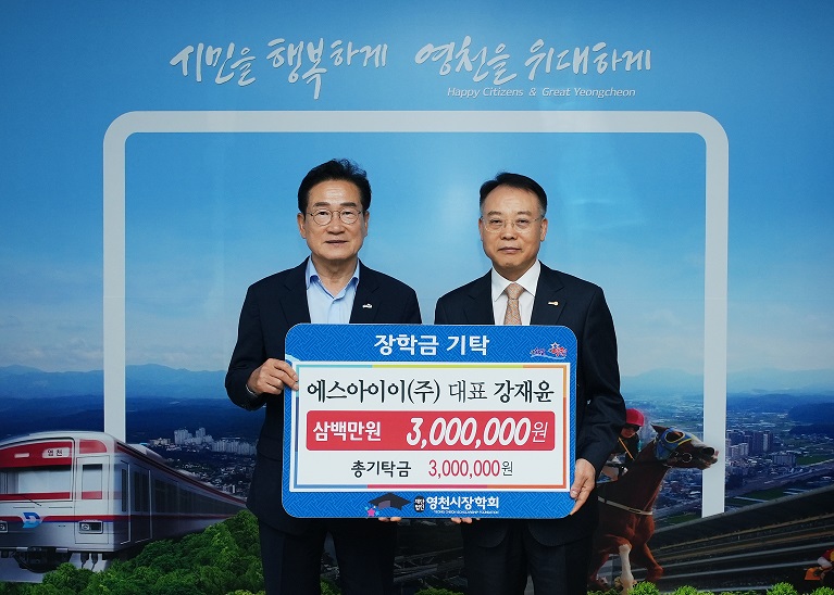 에스아이이(주) 강재윤 대표가 300만 원의 장학금을 (재)영천시장학회에 21일 기탁했다고 밝혔다.