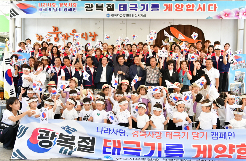 이번 캠페인은 광복의 의미를 되새기고 시민들의 자발적인 태극기 게양 참여를 유도하기 위해 마련됐으며, 조현일 경산시장, 안문길 시의회 의장, 연맹 회원 70여 명이 참여했다.