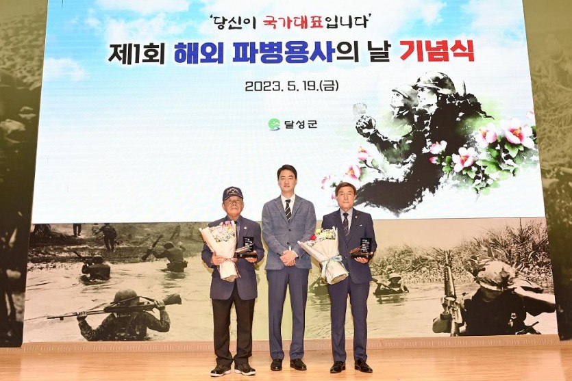 달성군은 지난 19일 전국 지방자치단체에서 처음으로 제1회 해외 파병용사의 날 기념식 ‘당신이 국가대표입니다’를 열어 해외 파병용사에게 고마운 마음을 전했다.