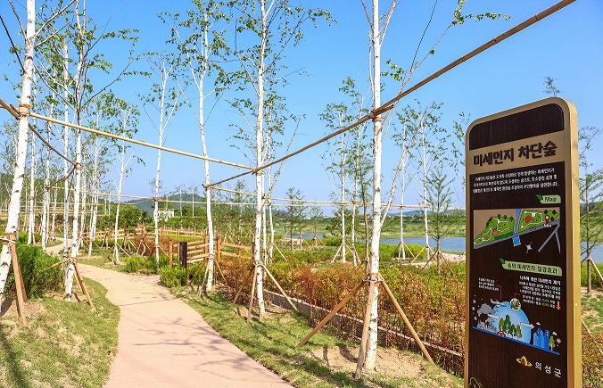 이번에 조성된 미세먼지 차단숲은 자작나무, 메타세콰이어 등 10여종의 교목과 관목 총 26,305주를 주변경관과 어울리도록 식재했다.