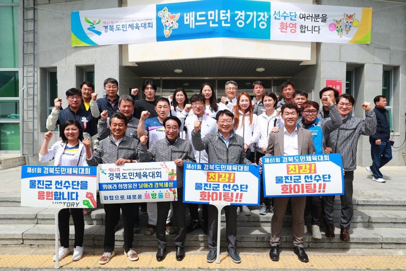 울진군 손병복 군수는 23일 울진에서 열리고 있는 제61회 경북도민체육대회 종목별 경기장을 찾아 경기에 출전하는 울진군 선수들을 격려하고 선전을 당부했다.