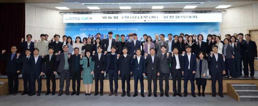 이날 2023년을 “청렴농협 구현 실천의 해”로 선정한 농협은  '범농협 3행 3무 실천운동' 을 집중 전개할 것을 선포했으며 농협 전 임직원이 반드시 실천해야 할 3가지 항목과 근절해야 할 3가지 항목으로 구성된 범농협 실천운동으로 개최했다.