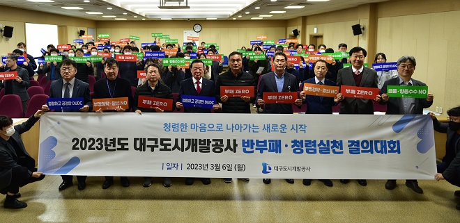 대구도시개발공사는 6일 공사 대강당에서 160여 명의 전 임직원이 참석한 가운데 "반부패 청렴실천 결의대회"를 개최했다고 밝혔다.