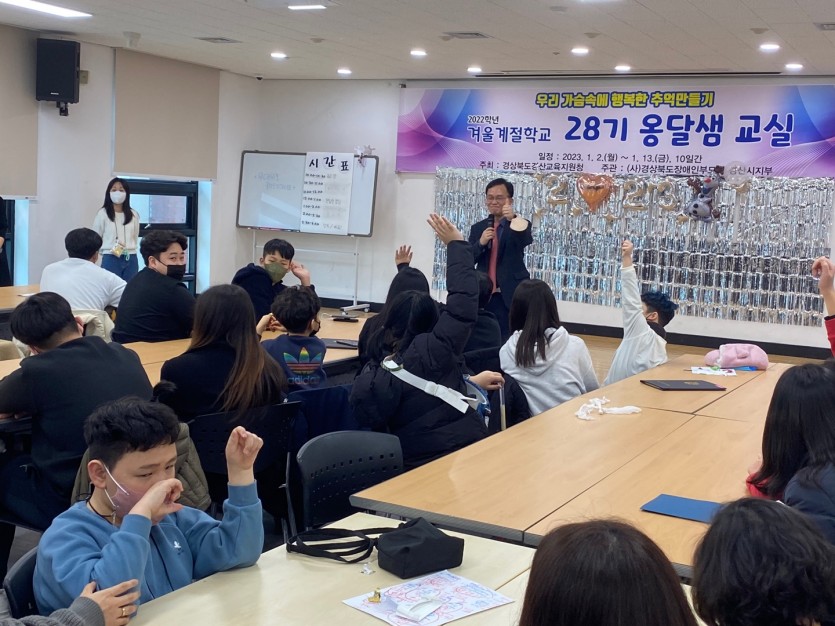 경산교육지원청은 2일부터 13일까지 관내 초․중․고등학교 특수교육대상학생 21명, 교사, 자원봉사자, 경산시장애인부모회 회원 등 총 50여명이 참석해 ‘특수교육대상학생 겨울 계절학교(옹달샘 교실 28기)’를 성황리에 마쳤다고 밝혔다.
