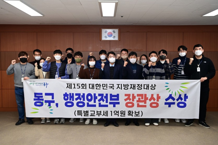 대구 동구청이 22일 행정안전부가 주최한 제15회 대한민국 지방재정대상에서 행안부 장관상을 수상해 재정 인센티브로 특별교부세 1억원을 받았다.