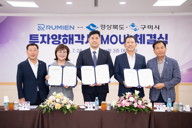 이번 협약식에는 양금희 경북도 경제부지사, 김장호 구미시장, 박교상 구미시의회 의장, 서태민 루미엔㈜ 총괄부사장 등이 참석했다.