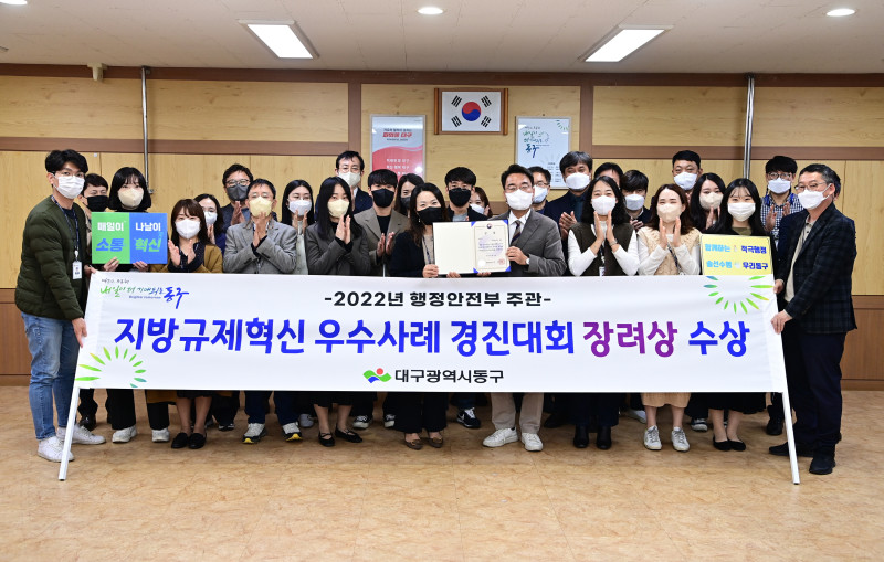 대구 동구청이 올해 행정안전부에서 주관하는 ‘2022년 지방규제혁신 우수사례 경진대회’에서 장려상을 수상하고 재정인센티브 3천만원을 확보했다고 14일 밝혔다.