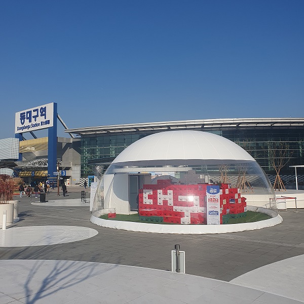 대구시는 지난 18일부터 12월 17일까지 동대구역 광장에 이색 투명 에어돔 전시관을 설치해 대구 도시브랜드 콘텐츠를 전시하며 아트랩범어, 펙스코(FXCO)에서도 대구의 이중매력과 특별한 시민들의 삶을 함께 소개한다고 밝혔다.