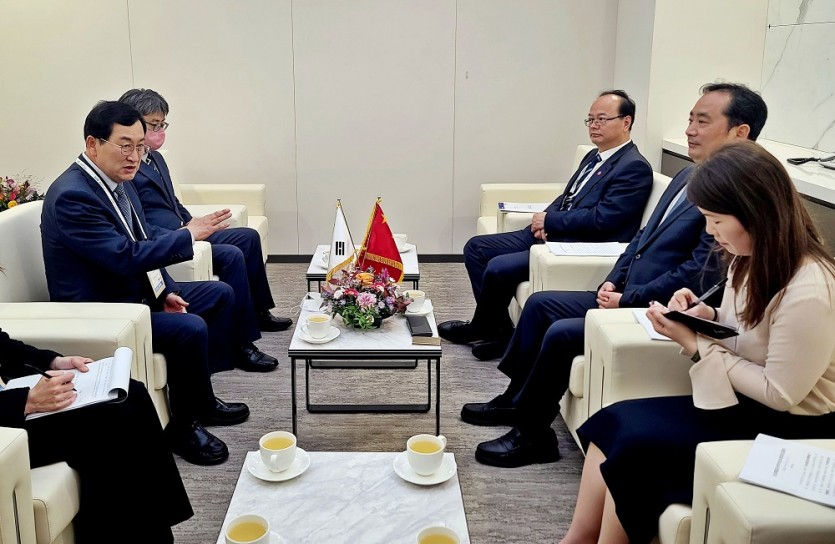 주낙영 경주시장이 지난 12일 세계지방정부연합 총회가 열린 대전컨벤션센터에서 중국 리 밍 위안 시안시장을 접견하고 환담을 나눴다.
