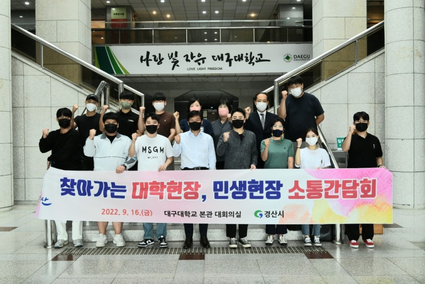경산시는 대학 현장의 목소리를 듣기 위해 지난 16일 대구대학교 대회의실에서 관내 10개 대학교 학생 20여 명과 함께하는 대학생 소통간담회를 개최했다고 밝혔다.