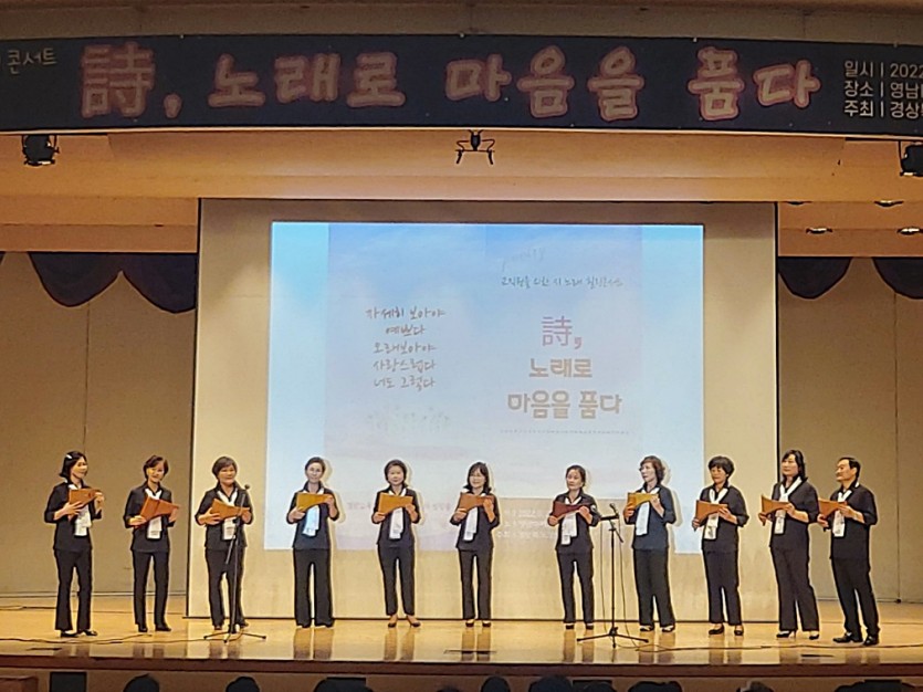 경산교육지원청는 지난 26일 영남대학교 천마아트센터 챔버홀에서 관내 교직원을 대상으로 "詩, 노래로 마음을 품다"라는 주제로 시노래 힐링 콘서트를 개최했다고 밝혔다.