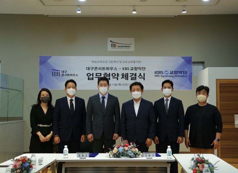 이날 협약식에는 김형국 대구문화예술회관 관장, 한창록 KBS교향악단 사장과 양 기관 관계자들이 참석하여 국내 음악 전공생과 청년의 교육 기회를 확대하고 향후 클래식 관객을 개발하는 등 상호우의 증진을 통해 공동의 발전에 기여하기로 약속했다.