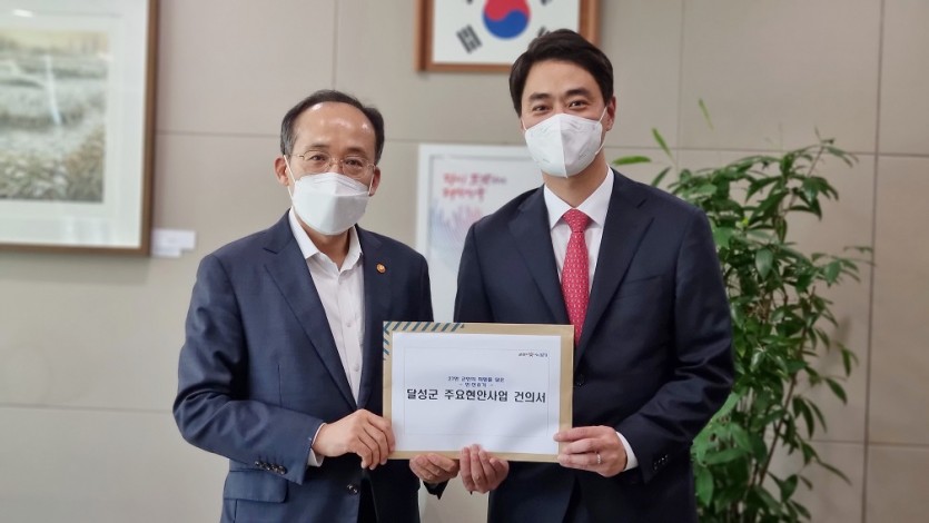 이날 달성군수, 부군수, 정책관광국장, 기획예산실장이 기획재정부 예산실장과 면담을 하고, 현 지역구 국회의원인 추경호 경제부총리 겸 기획재정부 장관과도 단독면담을 하면서 주요 현안사업과 국고지원 요청사업의 실행과 해결의 협조를 요청했다.