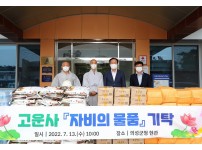의성군은 13일 고운사(주지 등운스님)에서 관내 어려운 이웃들의 급식을 위한 쌀(10kg) 193포, 국수 50박스, 생수 1000병, 초코파이 300박스를 기부했다고 밝혔다. 이날 기탁식에는 김주수 의성군수, 고운사 주지 등운스님과 정우스님이 참석했으며, 기탁한 식료품은 관내 사회복지시설 35개소(안사장애인공동체 외 34개소)에 전달되어 관내 취약계층을 위해 쓰일 예정이다.또한 의성 고운사는 대한불교조계종 제16교구 본사로 사찰 내 약사전과 석가여래좌상이 보물급 문화재로 지정돼 있으며 관내 다양한 복지시설을 운영해, 조손…