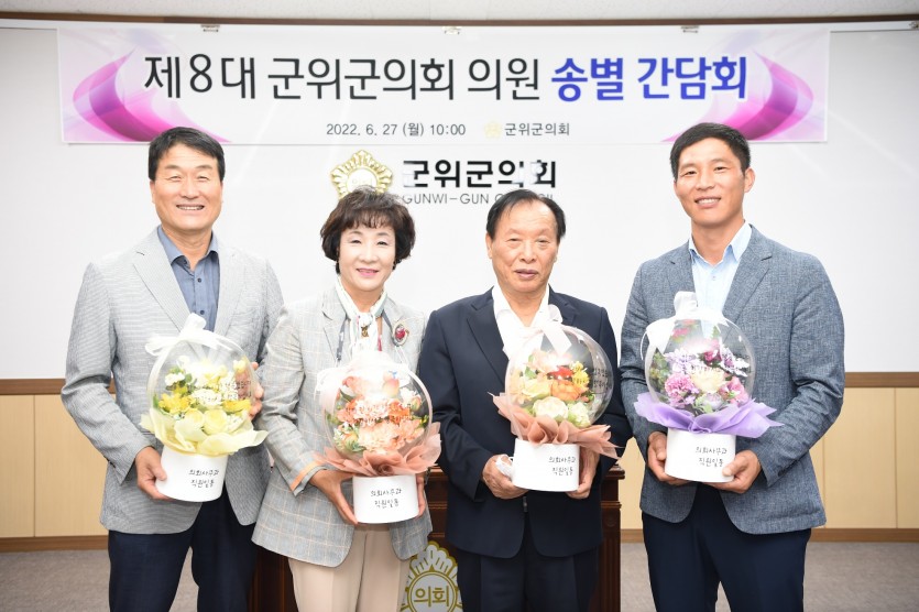 한편 심칠 의장은 마지막 송별 인사를 통해 “제8대 의회를 시작한 것이 엊그제 같은데 어느덧 4년이라는 세월이 흘렀다”며 “군민의 복리증진과 지역발전을 위해 열성적으로 의정활동을 펼치신 동료 의원과 의정활동에 협조를 아끼지 않으신 공직자 여러분 그리고 제8대 군위군의회에 변함없는 성원과 격려를 보내주신 군민 여러분들께 진심으로 감사를 드린다”고 말했다.