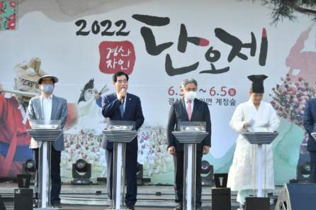 또한 “2022 경축 경산자인단오제” 글자에 LED 점등을 하는 퍼포먼스로 코로나19를 극복하고 많은 시민이 참여하는 경산자인단오 축제의 성공적인 개최를 기원했다.