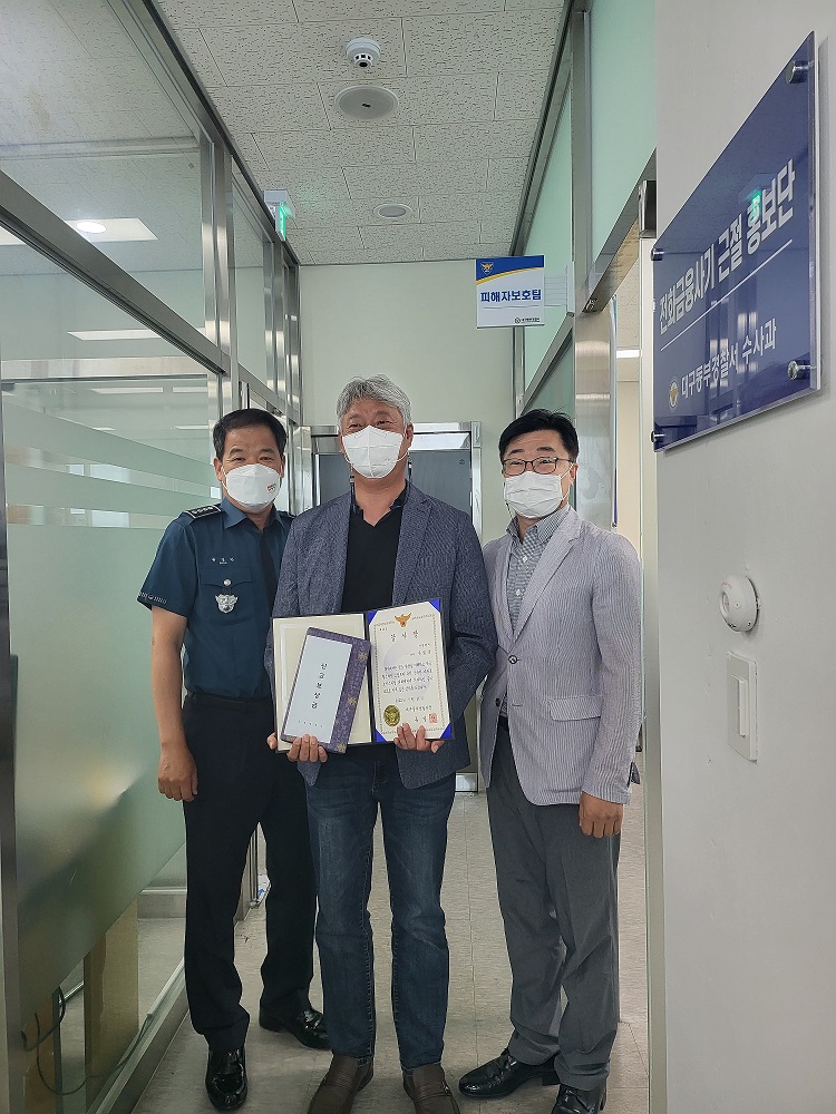 대구동부경찰서(서장 류영만)는 26일 전화금융사기(보이스피싱) 범인 검거에 도움을 준 택시운전자 A씨에게 감사장을 수여했다고 밝혔다.
