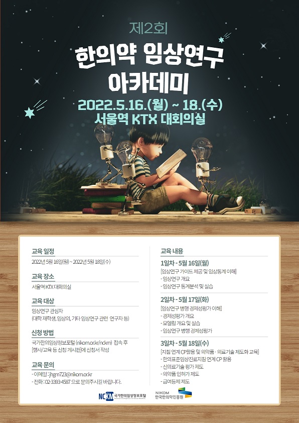 임상연구에 관심 있는 한의과대학 재학생 및 한의사, 연구자 등 한의 관련 종사자 누구나 참여 가능하며 오는 9일까지 국가한의임상정보포털에서 신청하면 된다.