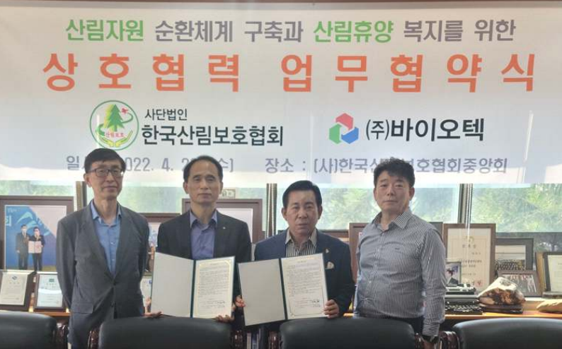 (주)바이오텍은 산림육성에 필요한 미네랄제제의 개발 보급과 약용작물의 생명자원화 기술 등을 지원해 경제림 조성과 지구온난화에 대응한 산림의 지속 가능한 이용 및 공익기능을 증진해 경쟁력을 강화해 나가기로 했다.