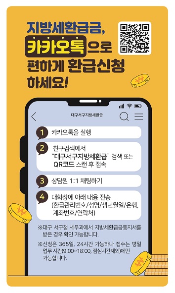 대구 서구, 지방세 환급금 신청 "카카오톡 서비스 실시"