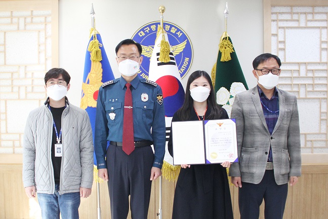 대구중부경찰서는, 방역수칙위반 대상 업소에 대한 합동단속에서 영업 제한시간을 위반한 업소를 적발한 공로로 중구청 보건소 위생과 소속 공무원에게 표창장을 수여했다고 21일 밝혔다.