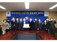 대구 수성구는 지난 4일 영남대학교 대회의실에서 영남대학교와 사회공헌 및 봉사활동 협력을 위한 업무협약을 체결했다고 밝혔다.이날 협약식에는 김대권 수성구청장, 최외출 영남대학교 총장을 비롯한 양 기관 관계자 10여명이 참석해 사회공헌 및 봉사활동에 관한 공동 프로그램 개발 및 운영, 지역사회발전을 위한 네트워크 강화, 사회공헌 및 봉사활동에 대한 정보 공동이용을 주요 내용으로 담고 있다.김대권 수성구청장은 “수성구와 경산시는 행정구역의 경계를 넘어 생활권을 공유하는 지역공동체로서 대구와 경산소재 대학(원) 재학생을 대상으로 수·경 …