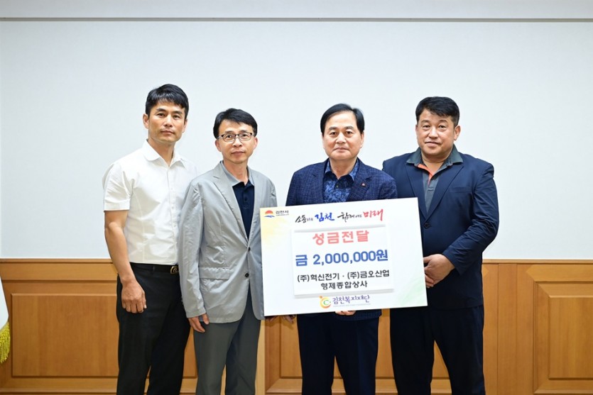 한편 같은 날, 지역 내 3개 기업인 ㈜혁신전기(대표 백남진), ㈜금오산업(대표 이병헌), 형제종합상사(대표 장태영)는 김천복지재단에 성금 200만 원을 전달하며 지역사회에 감동을 전했다.