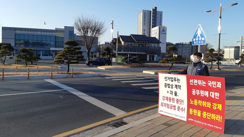 고령군 전공노, "부당한 투개표 선거사무, 강제동원 거부" 1인 시위