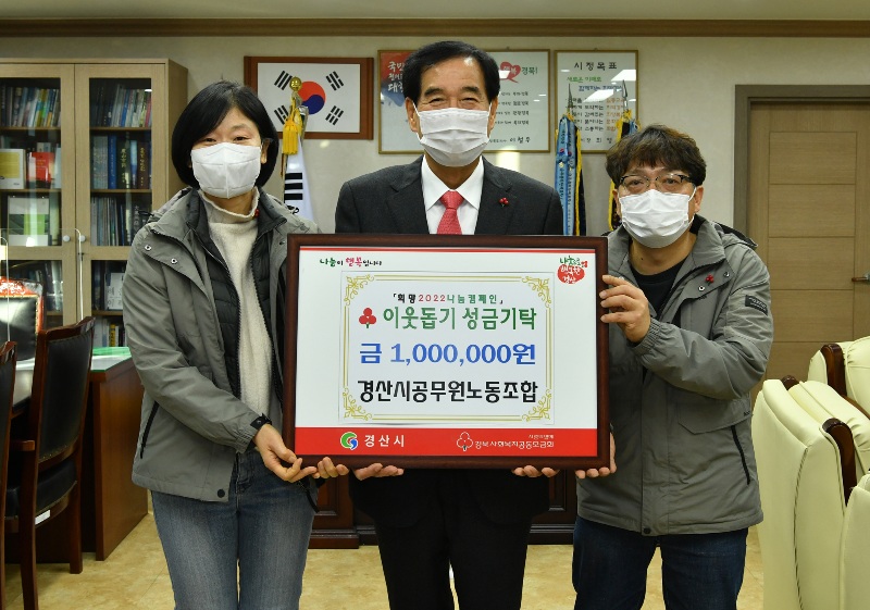 경산시공무원노동조합이 지난 17일 희망2022나눔캠페인에 참여하기 위해 성금 100만원을 기탁했다.