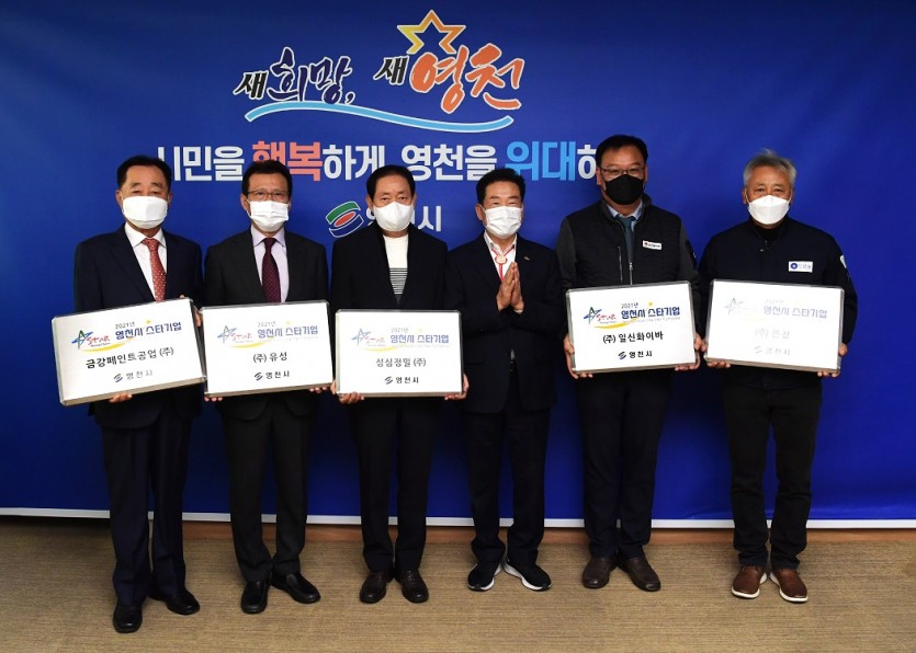 한편 영천시는 2010년부터 매출 신장, 고용 창출, 지역사회 기여도 등 종합적 평가를 통해 영천의 새로운 경제 성장을 이끌어 갈 스타기업을 선정하고 있으며, 올해까지 50개사가 스타기업으로 선정됐으며 스타기업은 중소기업 운전자금 최대 6억원 우대 및 운전자금 휴식년제(2년 지원 후 1년 휴식) 면제, 스타기업 육성지원사업 대상이 되며 전광판 표출 등 집중 홍보 혜택을 받게 된다.